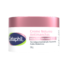 Cetaphil® Healthy Radiance Creme Noturno Antimanchas 50greduz visivelmente as manchas escuras causadas pelo sol e envelhecimento em 4 semanas11, proporcionando uma pele com glow logo pela manhã12F. Sua fórmula com textura aveludada também contém a Tecnologia Gentlebright™, que combina niacinamida e lírio do mar, além de ácido hialurônico, que aumenta a hidratação da pele. Estudos mostram que 91% dos usuários perceberam a pele com aparência mais saudável13G e 89% perceberam uma melhora na sua textura14H.