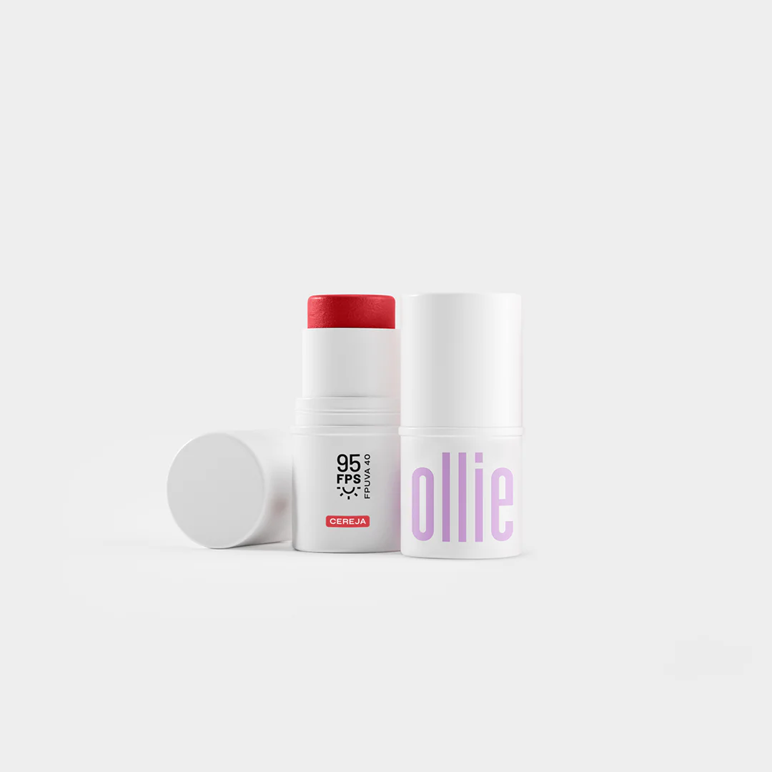 Bastão 3 em 1 - Blush, Batom e Sombra FPS 95 OLLIE - Cor Cereja